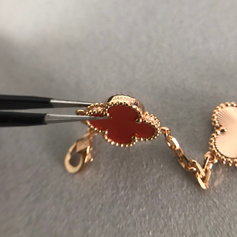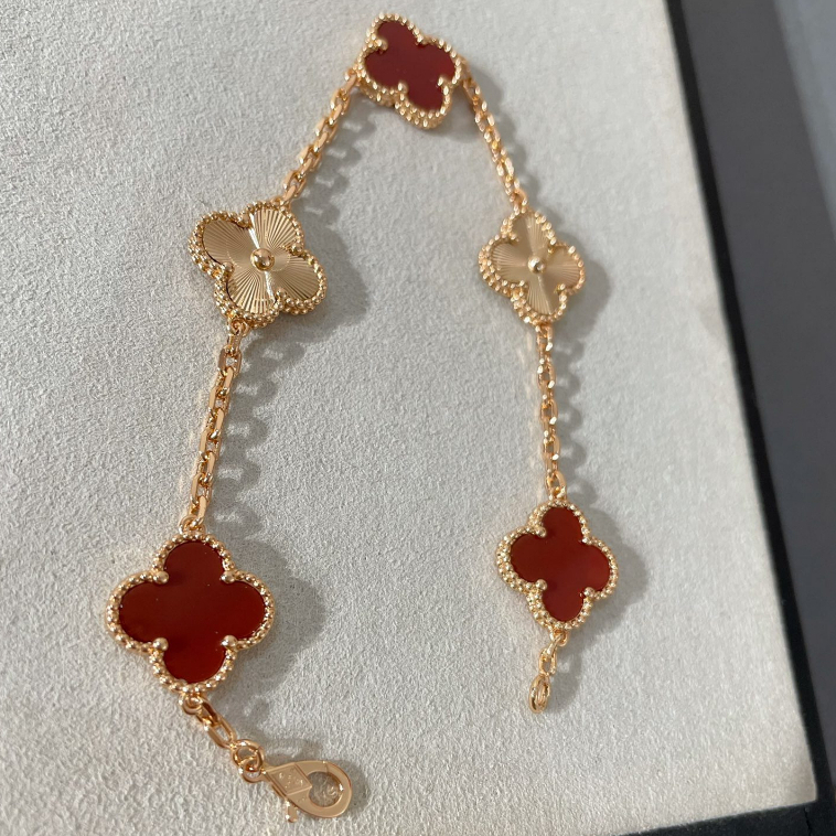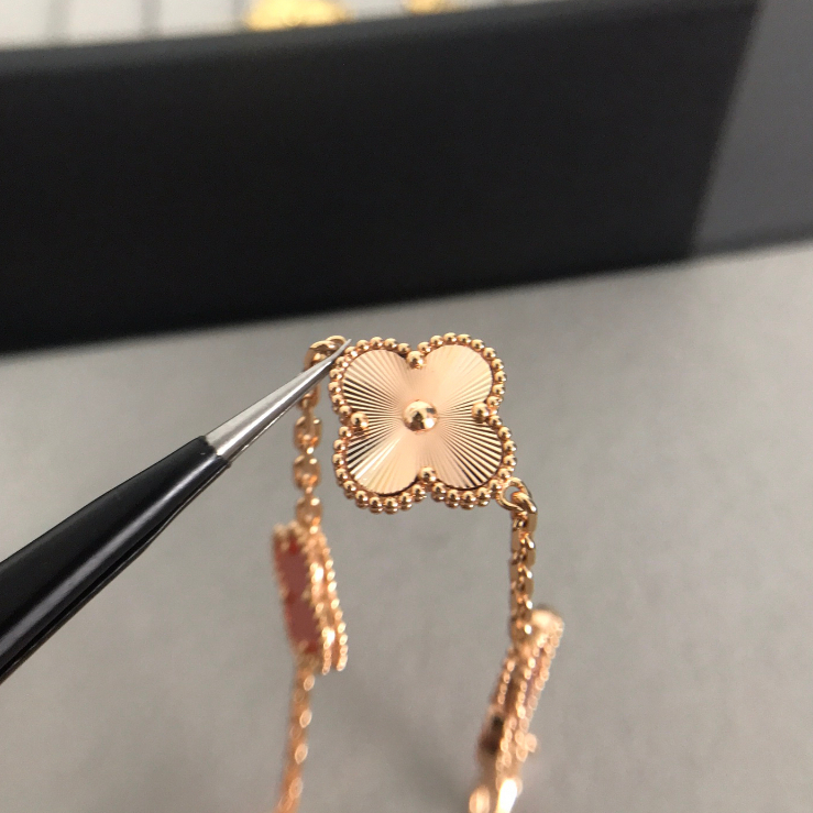 100% Original Authentic V&CA Van Cleef Bracelet 18K Rose Gold VAN Four Leaf Clover Red Bracelet For Women