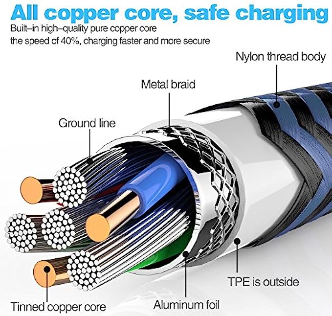• Nylon Braided, Extreme Durability: With a tested 12000+ bend lifespan, this USB-C to USB-A charging cable is far more dependable than others in its price range. Premium nylon braided Type C cable adds additional durability.