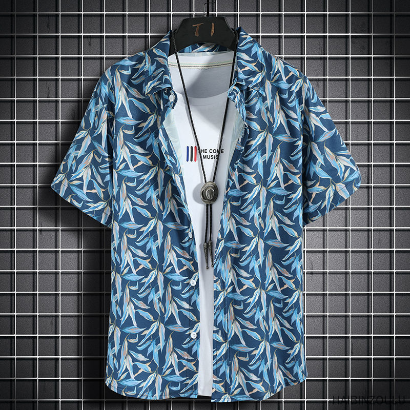 7-color boys' short sleeve shirt Hawaiian style beach shirt men's loose quick dry Casual Short Sleeve printed shirt beach quick dry T-shirt fashion trend loose oversized men's and women