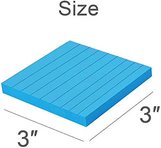 (8 Pack) Lined Sticky Notes 3x3 in Bright Ruled Post Stickies Colorful Super Sticking Power Memo Pads Strong Adhesive, 8 Pads/Pack, 82 Sheets/pad