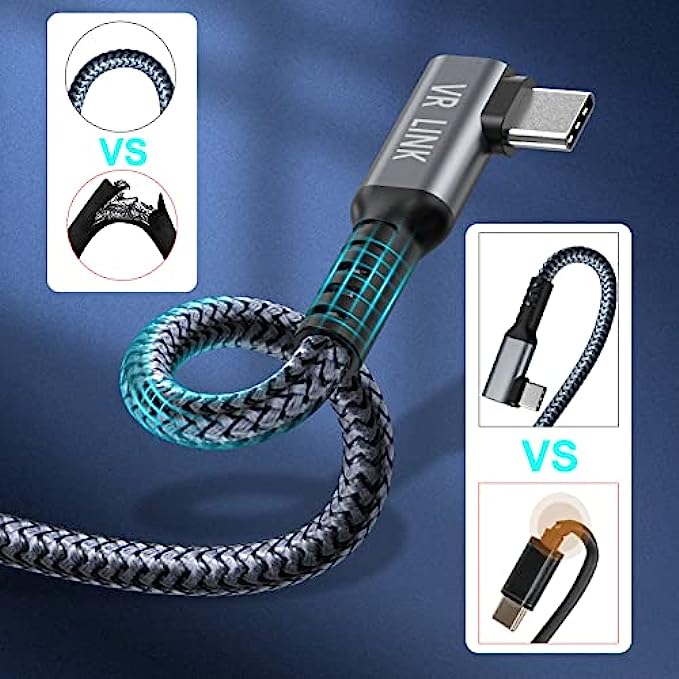 【Durable Material】Nylon Braided & Aluminum Alloy Casing. The nylon braided oculus quest 2 link cable is free to bend without breaking or tangling, making our oculus charging cable more durable and longer-lasting than ordinary cables.