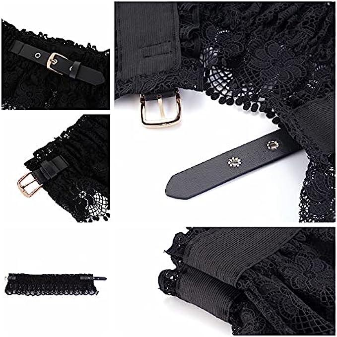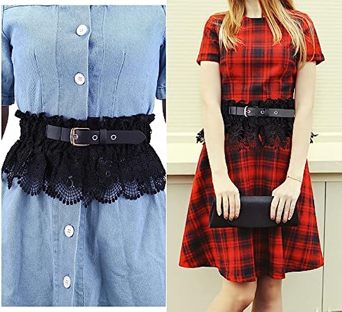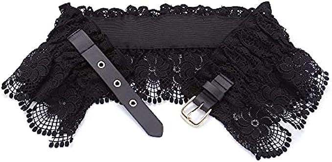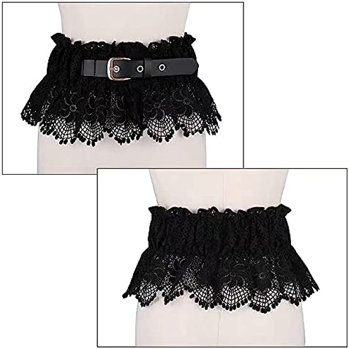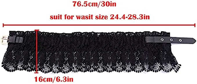 Lace Hook and Eye closure Elastic band wrap + buckle closure Size Length: 30''/76.5cm,width:6.3''/16cm.Fit Waist 24.4"-28.3". Pls consider the belt size before your order.NOTIC: We recommended to consider the thickness of the matching clothes.if the clothes are too thick, the size may be inappropriate. The belt strap is made from a strong elastic.It's allowing the belt to stretch comfortably around your waist. It's perfect to match any clothes,such as long dresses,long T shirt,sweater,skirt or any special occasion. Best for photography,Christmas Party,girlfriend birthday, concert, theme party,costume,cosplay,halloween etc.