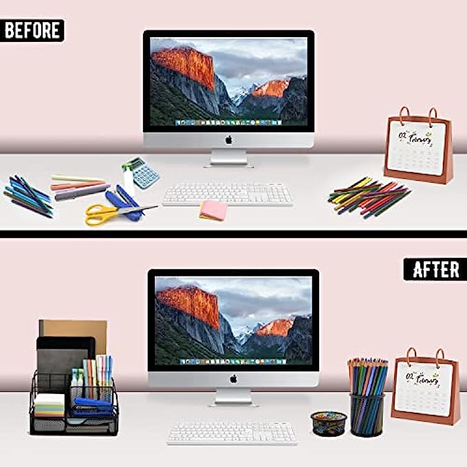 Space Saving Option for Office/Art Supplies: Desk organizers have enough storage space to accommodate your desk supplies as files, books, mails, bills, documents, envelopes, folders, pens, pencils, markers, post-its, rulers, paper clips, binder clips, business cards, and more, also good for organizing makeups and small household items; keep it organized, easily find anything you need.