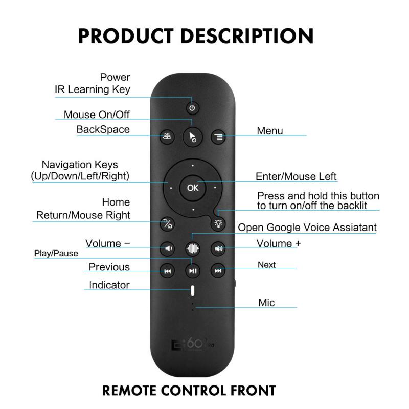 G60S Pro Air Mouse Wireless Voice Remote Control 2.4G Bluetooth Dual Mode IR Learning with Backlit for Computer TV BOX Projector