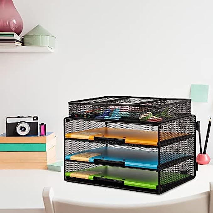 • MULTI-PURPOSE ORGANIZER: Ideal for holding Letter/A4 size paper, folders, books, magazines, files, catalogs, bills, mail forms, and all kinds of desk accessories.