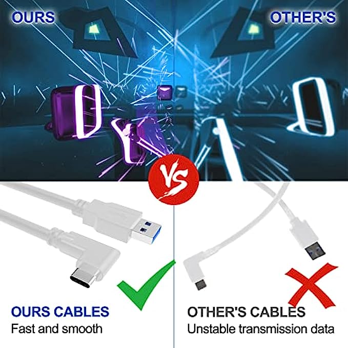 • 【Cord for PC to Connect Meta/Oculus Quest 】BSTKEECL high quality long VR cables design length up to 16FT(5m),which making you connect the headset and play computer games easily ,and having an immersive gaming experience .Thus you must not be worry about the dragging the limited cable.