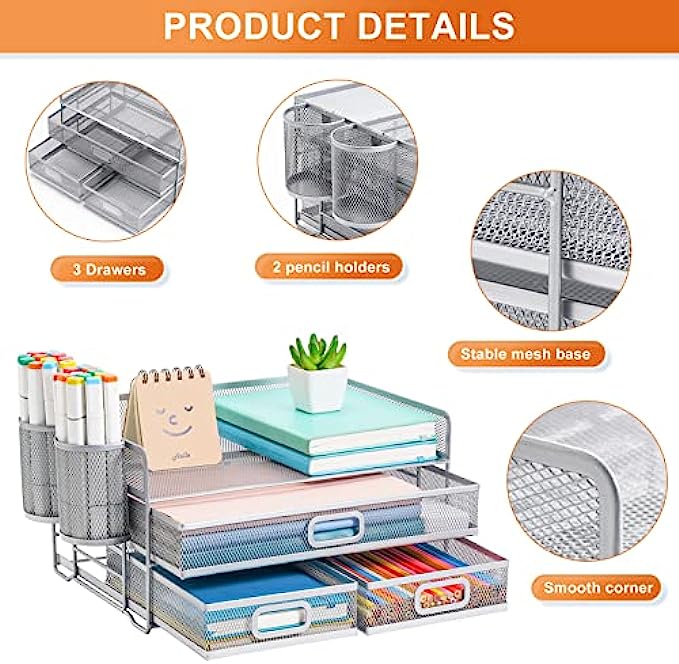 • 【Convenient Personal Storage】Compared with other mesh desktop organizer. The Multi-drawer design can help you store some important papers, whether it is personal letters or personal information can provide you with a certain privacy protection space.
