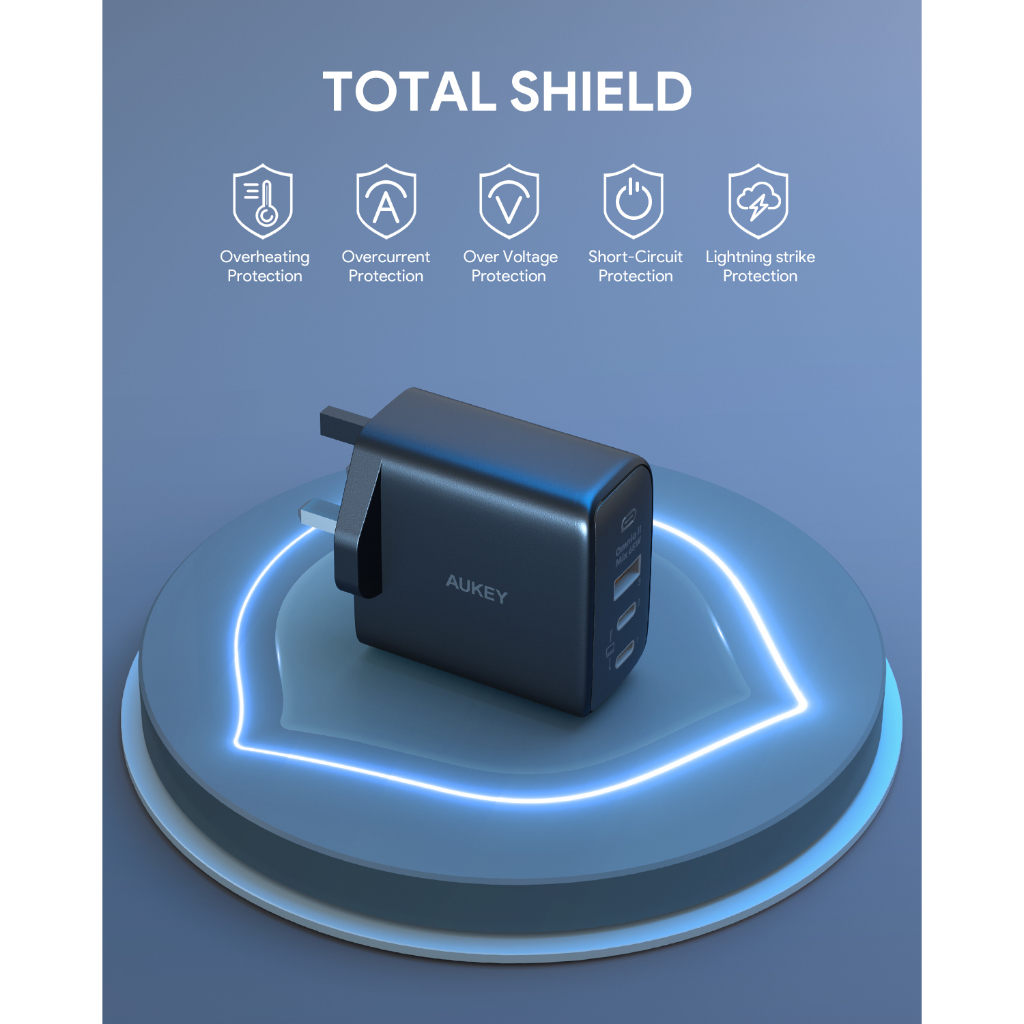 Aukey PA-B6T Omnia II 3-Port 65w PD & Super Fast Charging (PPS) Wall Charger w GaN Power Technology (24 Months Warranty)