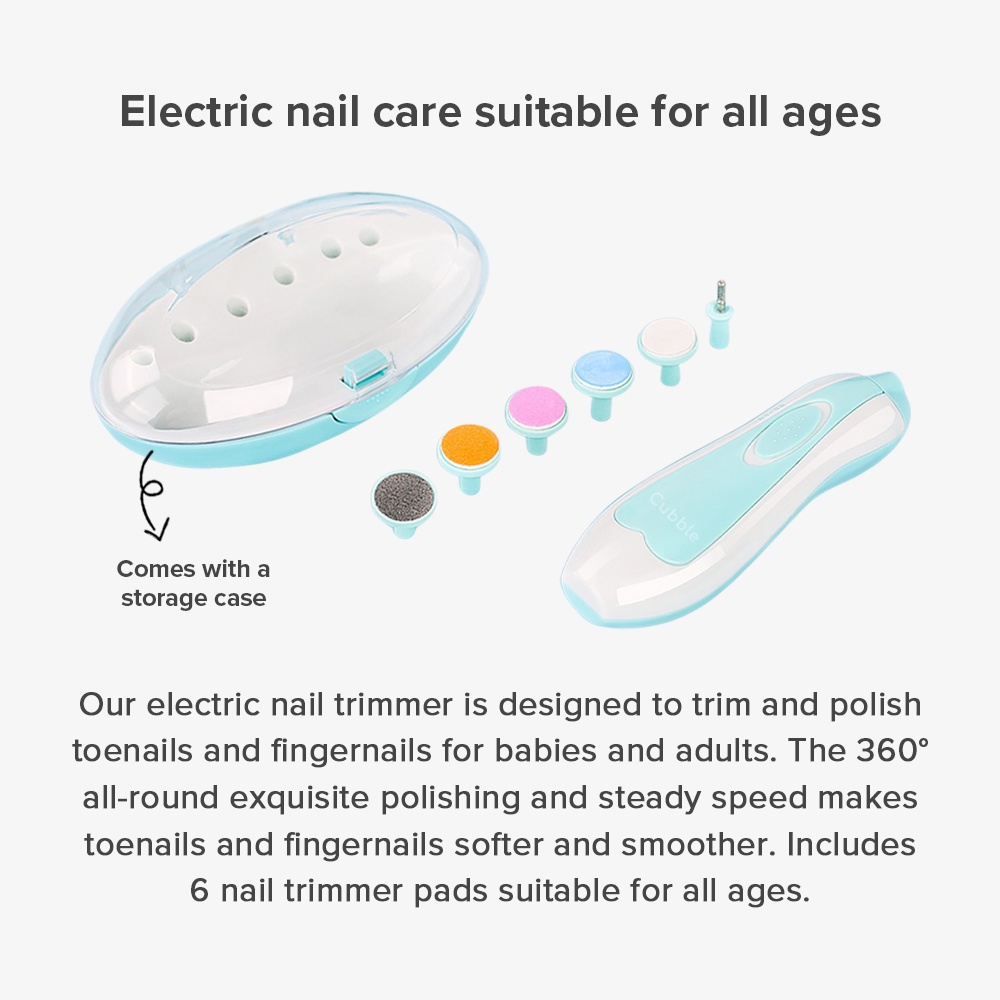 Cubble Electric Baby Nail Trimmer Set with LED Light (2 Colours) Suitable from 0 Month+ Nail Care Set