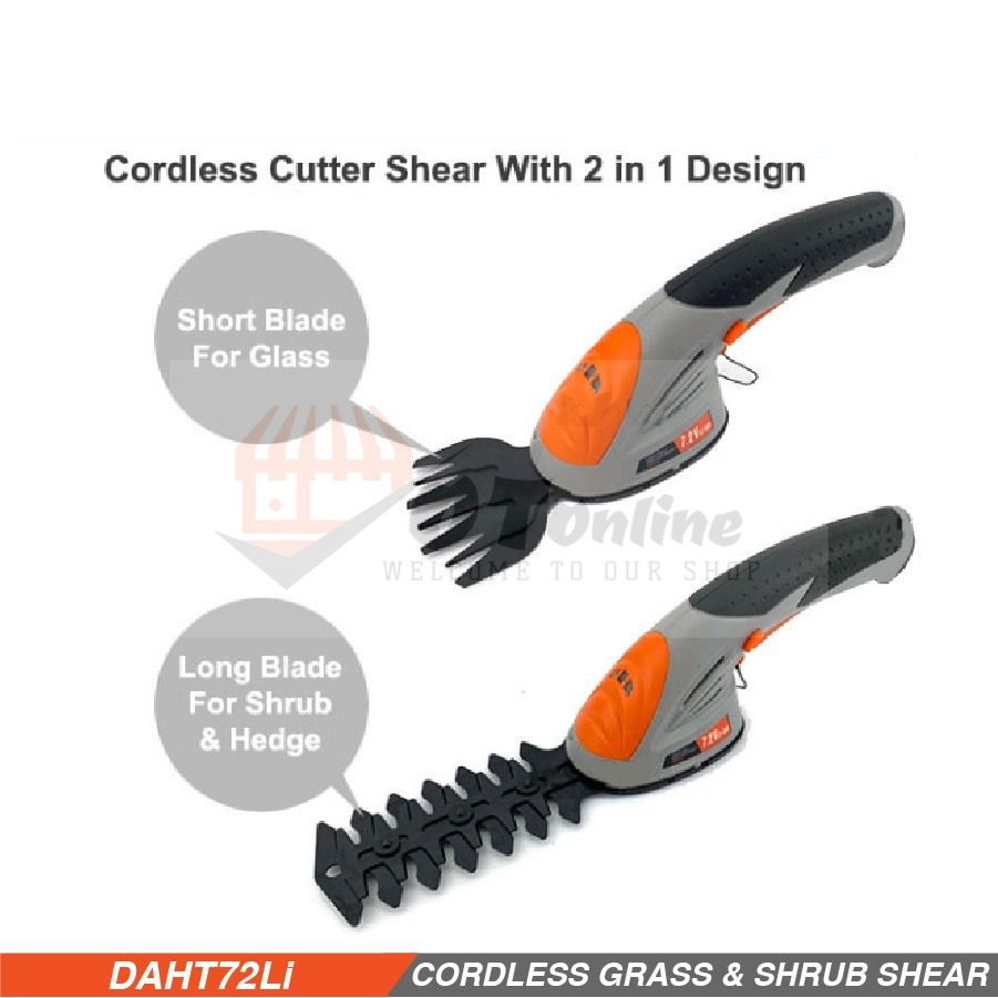 DAEWOO Grass Trimmer 7.2V Cordless Grass & Shrub Shear Hedge Trimmer Rechargeable Garden Grass Cutter