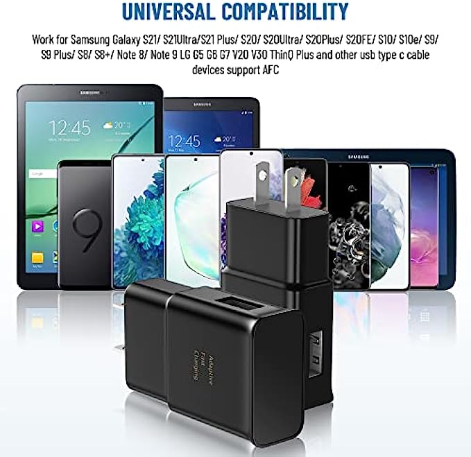 Type C Charger Fast Charging:Compatible Samsung Galaxy S21 S21+ S21Ultra S10 S9 S8 S22 S22Ultra S22+ S20 S20 Plus S20 Ultra Z Filp 3 Fold 3 Note20 Note10 S10+ S9+ S8+ Note 8 Note 9,LG G5 G6 G7 V20 V30 ThinQ Plus and other usb type c cable devices support AFC (Adaptive Fast Charging)