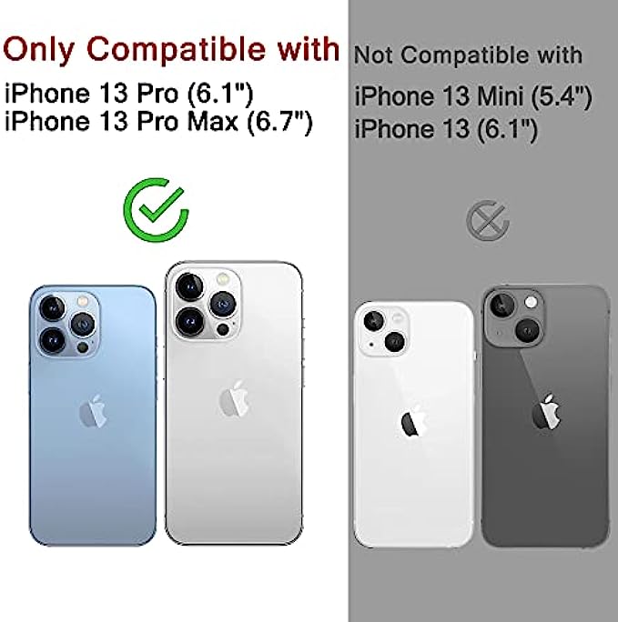 • Compatibility: Included 3 Pack Tempered-Glass Camera Lens Protector, only for iPhone 13 Pro Max 6.7 inch & iPhone 13 Pro 6.1 inch, Not for any other models. Fully protect your phone.