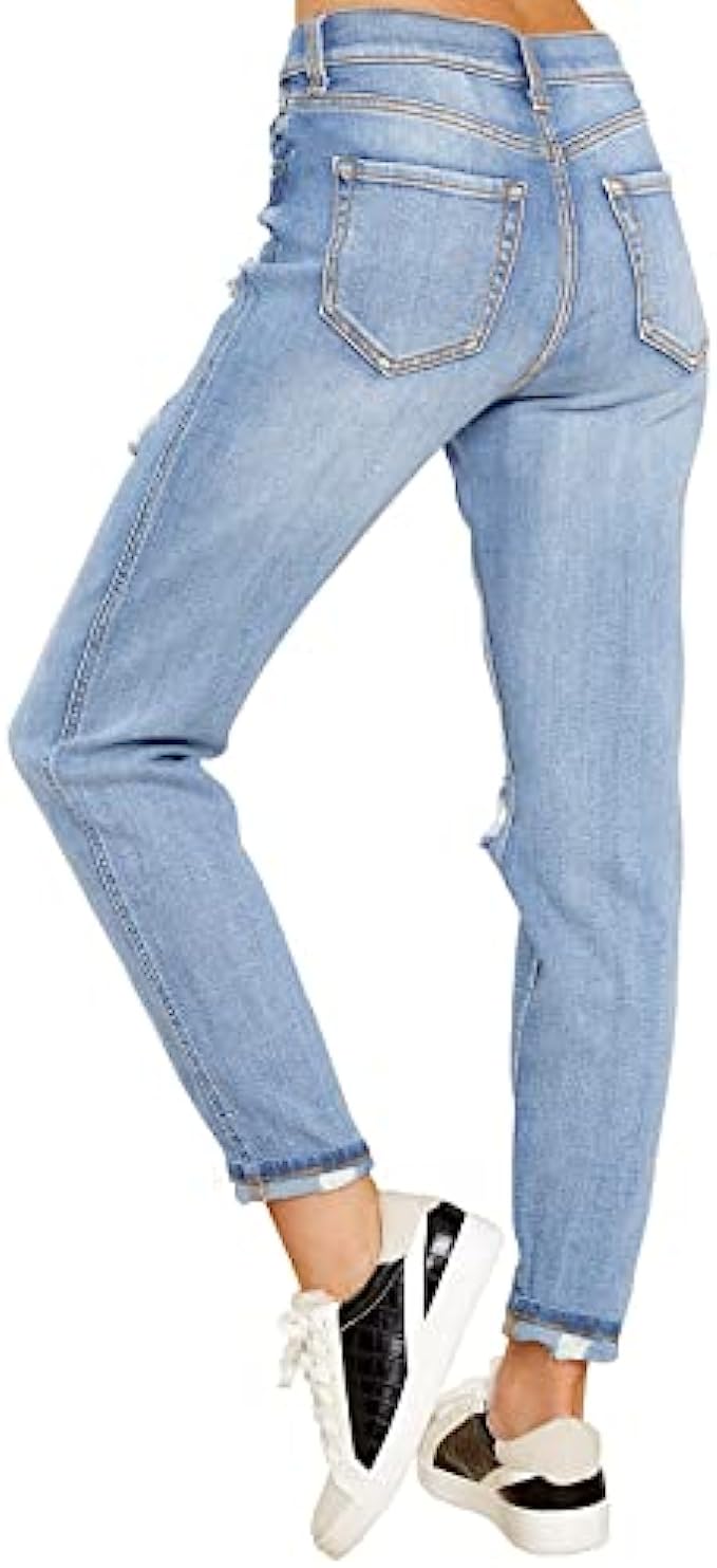 72% Cotton, 27% Polyester, 1% Spandex Imported Zipper closure Machine Wash These high rise distressed jeans for women are featured in relaxed fit, tapered leg and ankle length with optional rolled cuffs. Stretchy mom jeans are sure to flatter your curves perfectly. Casual relaxed fitting mom jeans with ripped detailing, 5 traditional pockets, zip fly and button closure. Ripped denim jean pants for women with soft, breathable, durable and stretchy denim fabric for everyday comfort. Keep your look trendy and laid back by wearing these fashion ankle jeans with a comfy tee and sneakers, boots or heels. The tapered leg design will elongate your legs and balance your figure well.