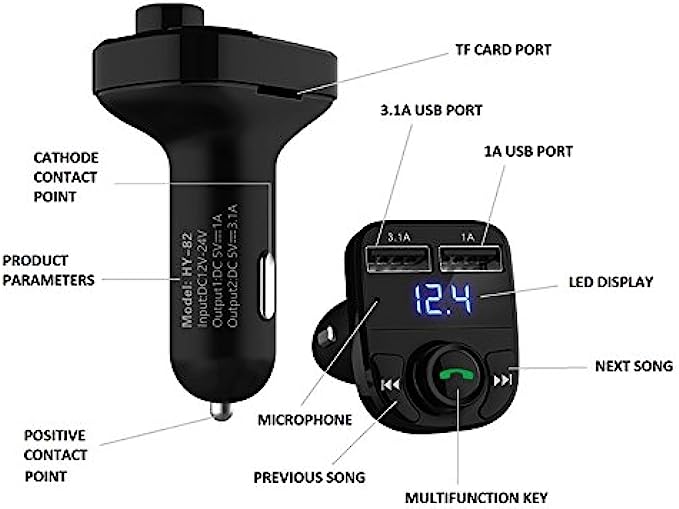 Dual USB car charger: 2 USB charging port to charge most USB Devices. Input 12V/24V, 1a port with USB reading and charge function; smart 3. 1 A charge port which can intelligently identify Android or iOS devices and charging. More compatibility: wireless Bluetooth FM transmitter adapter for car radio,transfer calling/MP3 music/Cellphone voices to car speaker.Compatible with iPad,iPhone,Samsung,Google,LG,HTC and Bluetooth Device. Hands free function: built-in microphone, switch to hands-free mode automatically from music playing status when receiving calls. Answer/reject/hand up/recall all in One key. Car battery voltage function: Show 3 seconds voltage when plug into the car outlet port. Always keep battery state of health. Then it turn to automatic play mode. Music playing:support Bluetooth /USB disk/TF card/ MP3/wma player. With anti-interference performance and CVC technology.Listening to music while charging. Automatically connect memorized paired when power on. 12-Month worry-free.