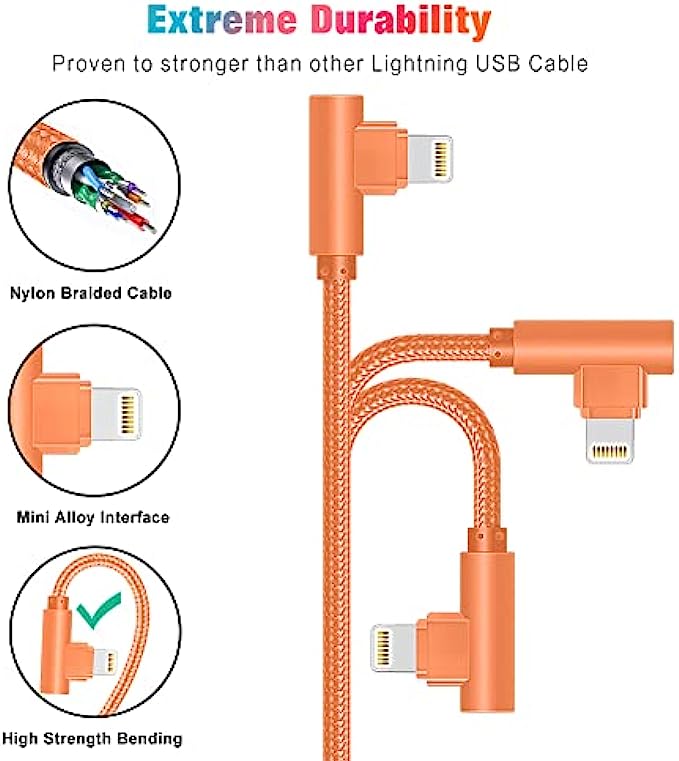 • Fast Charge & Data Transfer:Internal high-quality four-core copper wires help to reduce cord resistance,ensure iPhone cable charges 20% faster than other lightning charging cable. Supports maximum 2.4amp current and 480Mbps transfer speeds for your devices in 100% safe case.