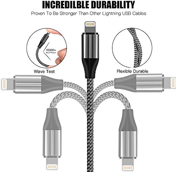 • 【Ultra Durable iPhone charger】: Reinforced stress points with a 10000+ bend lifespan make iPhone cord many times more durable than anything else on the market.
