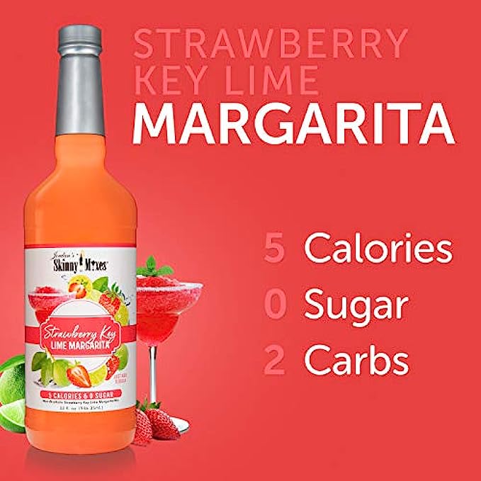 Jordan's Skinny Mixes Strawberry Key Lime Margarita, Sugar Free Cocktail Flavoring Mix, 32 Fl Oz