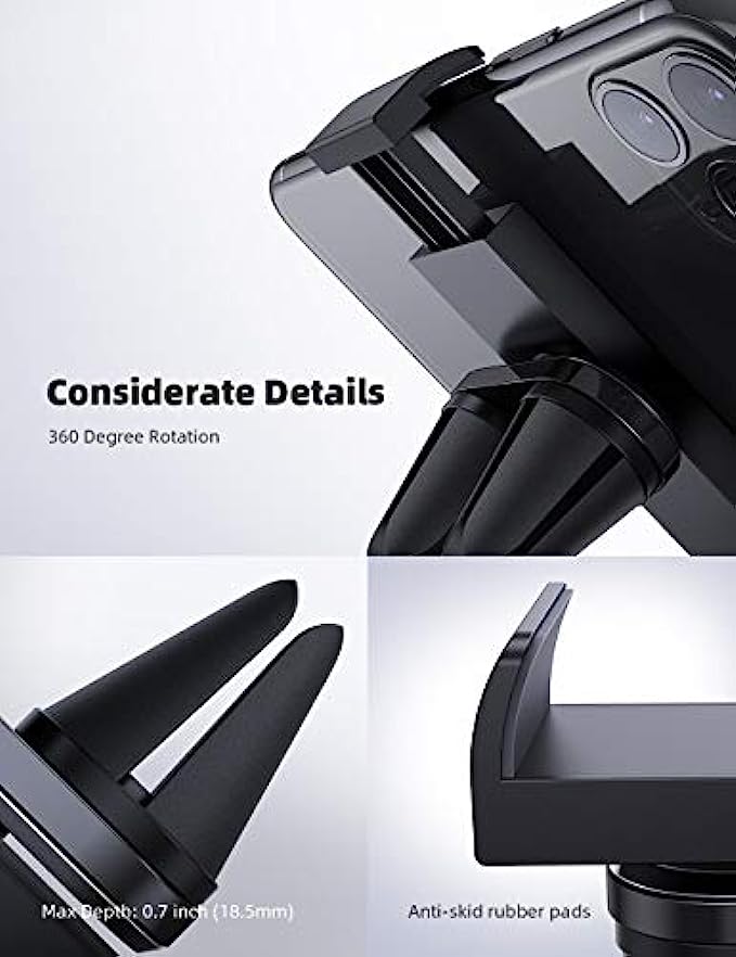• 【No Scratches】The phone car clip is padded with rubber cushions that protect your phone as well as the air vent from scratches.