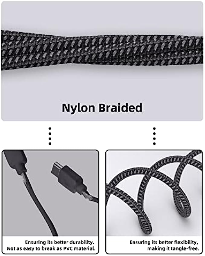 16FT VR Link Cable: The ergonomic design reaches 16 feet length and lightweight, flexible design provides more freedom of movement than most VR headset cables for a good experience.Nylon braided cable and solid metal connector, ensuring its better flexibility and durability, making it tangle-free and extremely convenient to stretch when you are in a game.