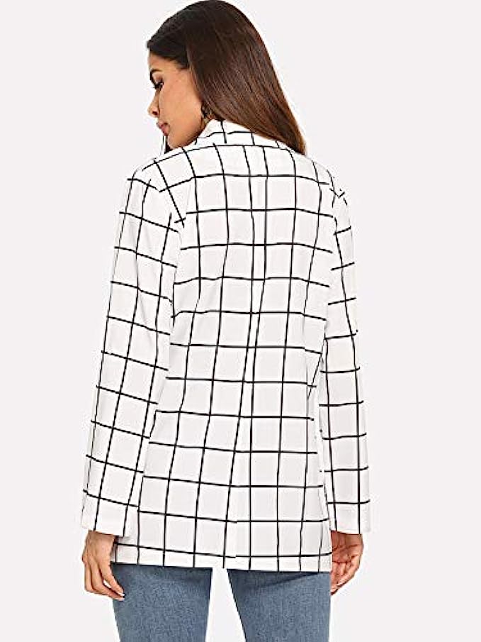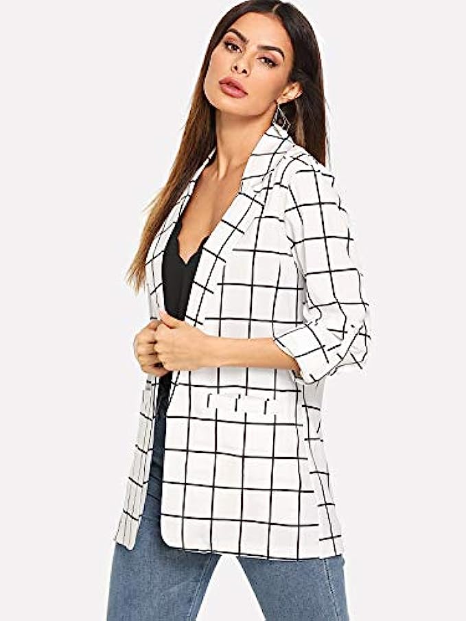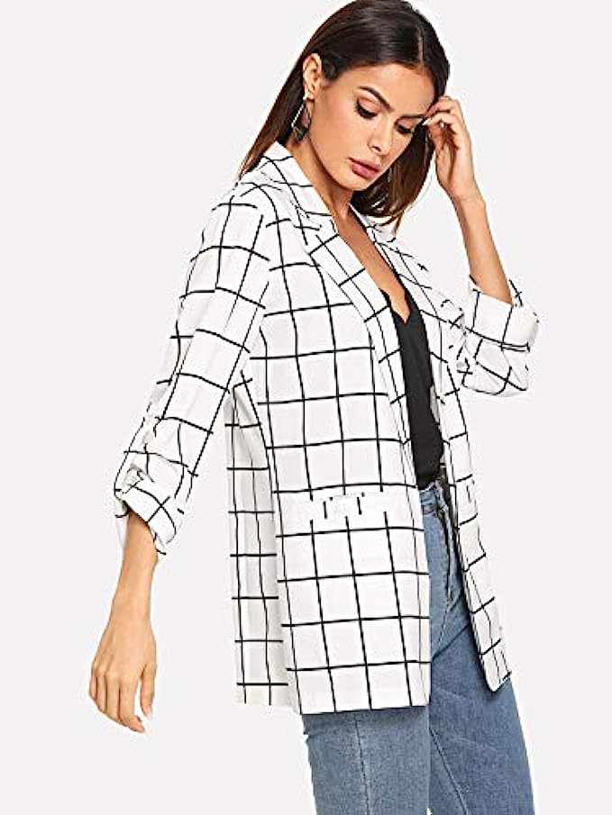 Milumia Women's Open Front Blazer Casual Lightweight Plaid Roll Up Sleeve Jacket Shirt