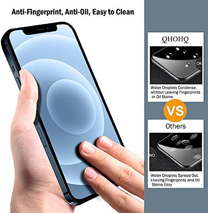 QHOHQ 3 Pack Screen Protector for iPhone 12 Pro Max 6.7" with 2 Pack Tempered Glass Camera Lens Protector, Ultra HD, 9H Hardness, Scratch Resistant, Easy Install - Case Friendly