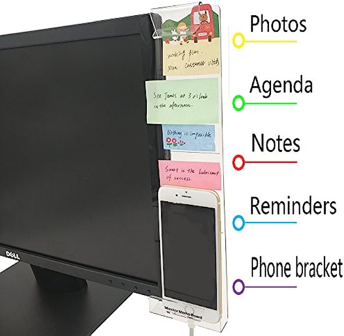 Quadow Monitor Message Board/Computer Monitors Side Panel/Notes Memo Board Message for Monitors,1Set (Left & Right) (with Phone Holder)
