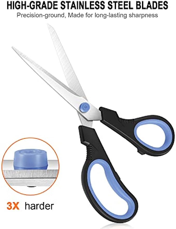 Scissors, All Purpose Thickened Craft Scissor 8.5", Stainless Steel Sharper Comfort Grip Sewing Fabric Scissors for Office School Home Supplies, Right/Left Handed, 3-Pack