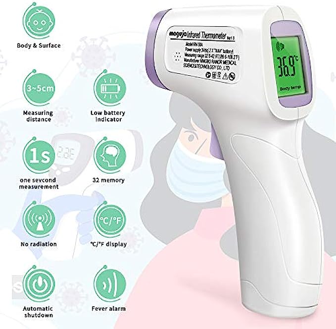 ➤【Friendly Design】The no-touch digital thermometer has a non-slip design, and the LCD display is clear and easy to read, the display can be used at night without in light. The thermometer is equipped with an internal memory that can store up to 40 sets of data readings that allows you to keep track of the historical temperature changes for you and your family.