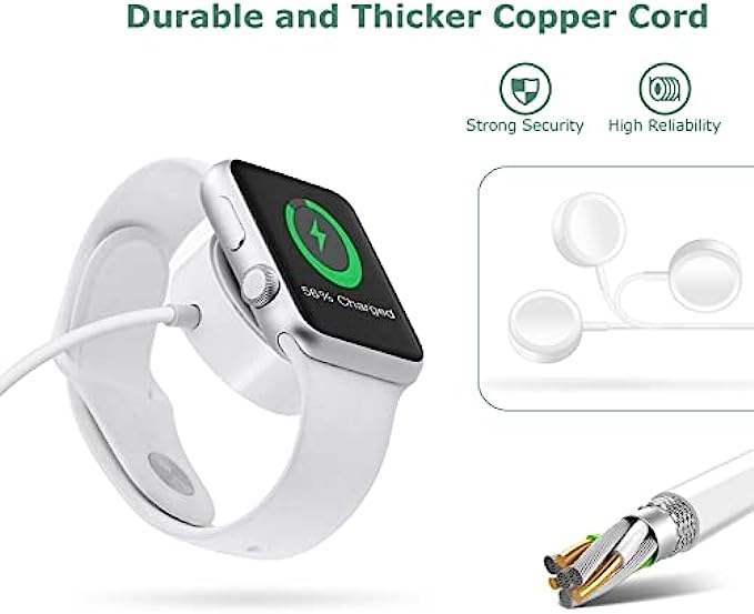 • 【Upgrade Material】The watch charger cable is made of high quality materials, to ensure excellent charging performance and stable connection, reliable bending test for longer life, more durability.