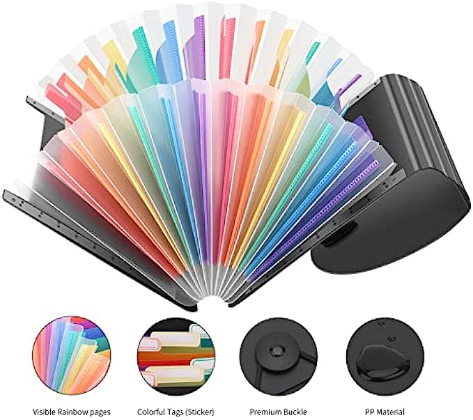Uquelic Desk Stand Receipt Folder - 13 Pockets Expanding Coupons Storage/Rainbow Large Capacity Small Document Organizer with Label, 10 x 5 inch (Black)…