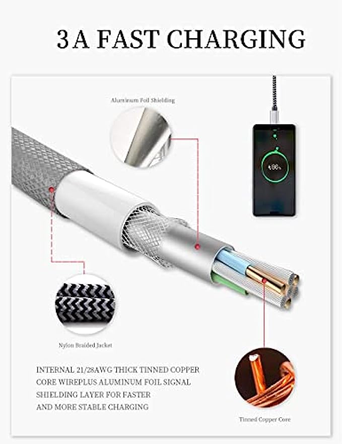 【3A Quick Charge&Sync】Transfer speed up to 480Mb/s, 3A Fast Charger,This power cord alone will not provide you with fast charging alone, you will need a power block rated for fast charging and a phone capable of the same.