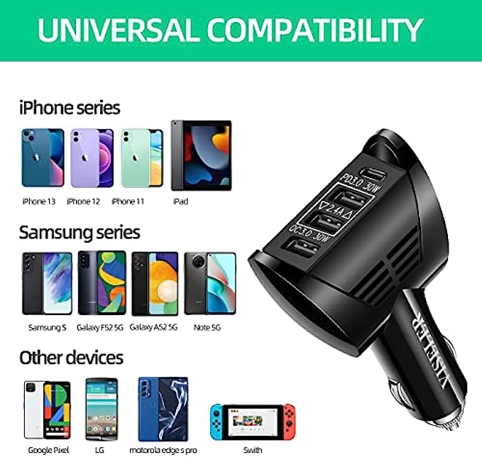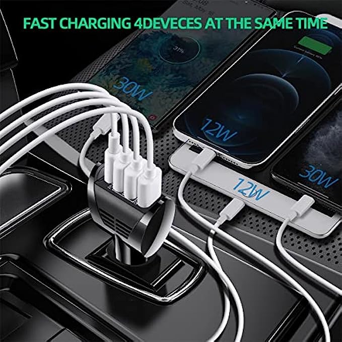 • 4 USB car charger is wide compatibility, compatible with iPhone series, iPhone 13 12 11 Pro Max X Xr 8 Plus SE2 iPad Pro, Samsung Galaxy series, Galaxy S21 S20 Ultra 5G S10 Note 20 10 A70 A50, Pixel Nexus, LG, Huawei, tablets etc.