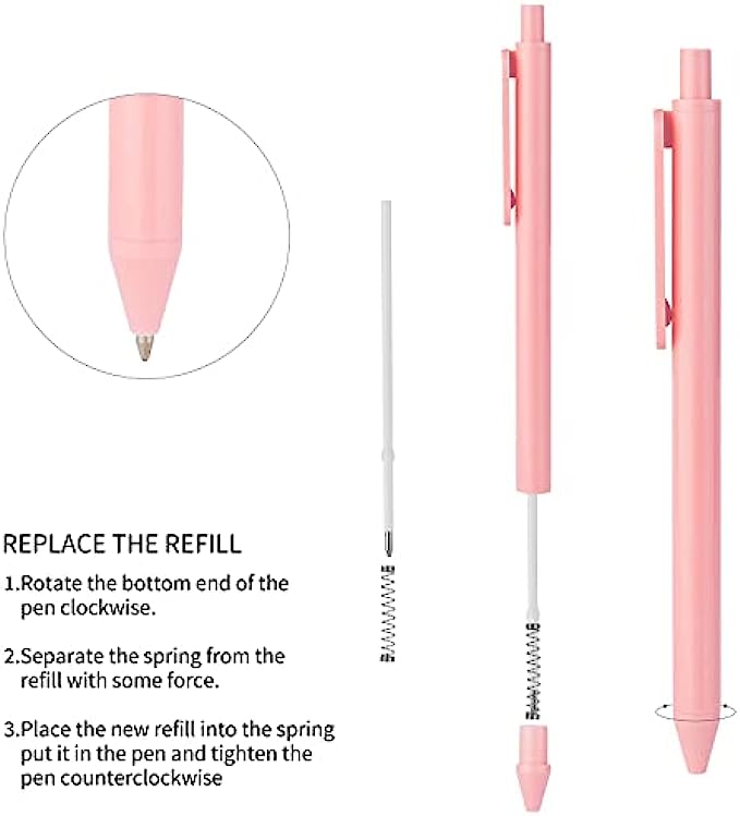 【SMOOTH WRITING】:click pen, durable, suitable for long-term use; 1.0mm medium point, black ink is easy to dry, not easy to smear to cause smudges;Easy to hold- stable clips, easy to connect to a laptop or pocket, easy to carry around.